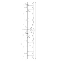 Cerradura de embutir con 5 puntos de cierre al frente de palanca. Frente funda de acero en U de 22x9.5 mm de ancho. Cerradura central con palanca proyectada 37mm a 4 vueltas. Entrada de 65mm. Medida entre ejes de 85mm. Con cilindro europeo de alta seguridad de radio de 15mm, gama AS6 de serie. Longitud de frente de 2030mm. Picaporte y palanca niquelados. Caja cerrada de acero. Refuerzo cerradero en dotación. Picaporte reversible y accionable mediante manilla o llave. Acabado oro.