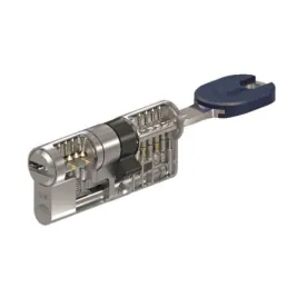 - El núcleo del sistema es un elemento magnético activo, incorporado tanto en el cilindro como en la llave, que impide la apertura con copias ilegales o llaves manipuladas.