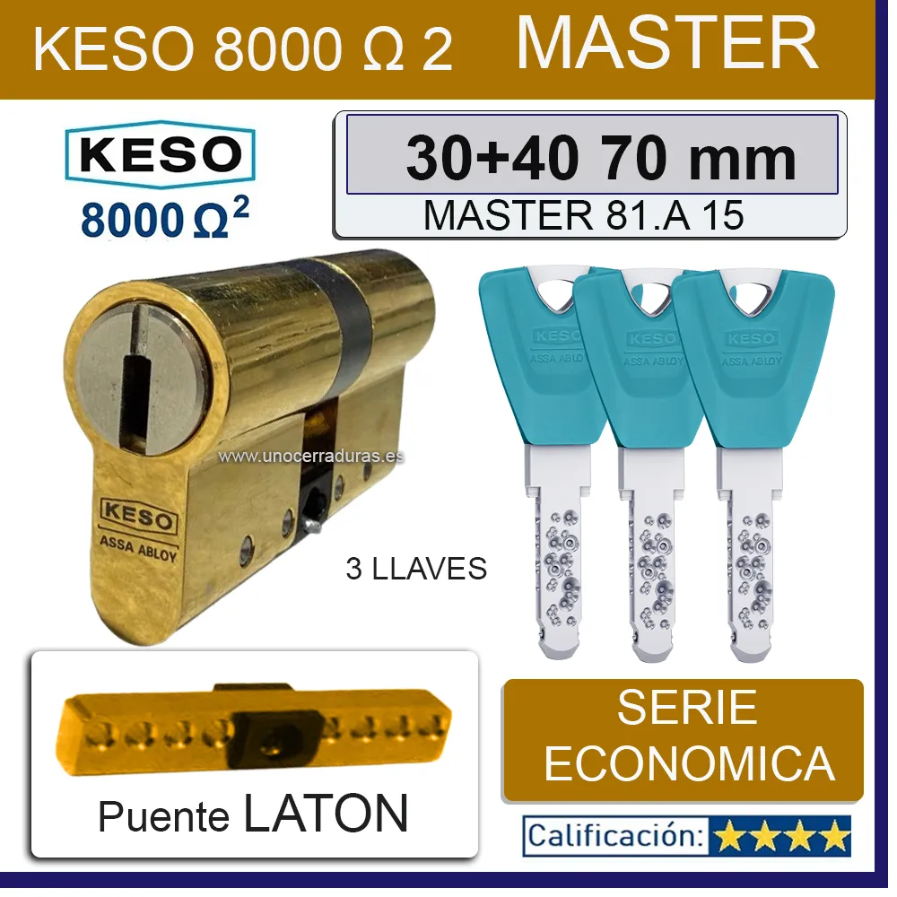 CILINDRO KESO 8000 Omega² 81.A15 MASTER 30+40:70mm ORO 3 Llaves