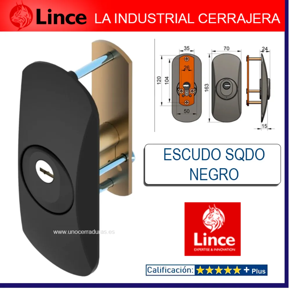 Nuevo escudo de seguridad LINCE SQDO de alta resistencia que protege el cilindro (bombillo) y la cerradura de su puerta frente a los robos por extracción, taladro, fresado o apalancamientos.
