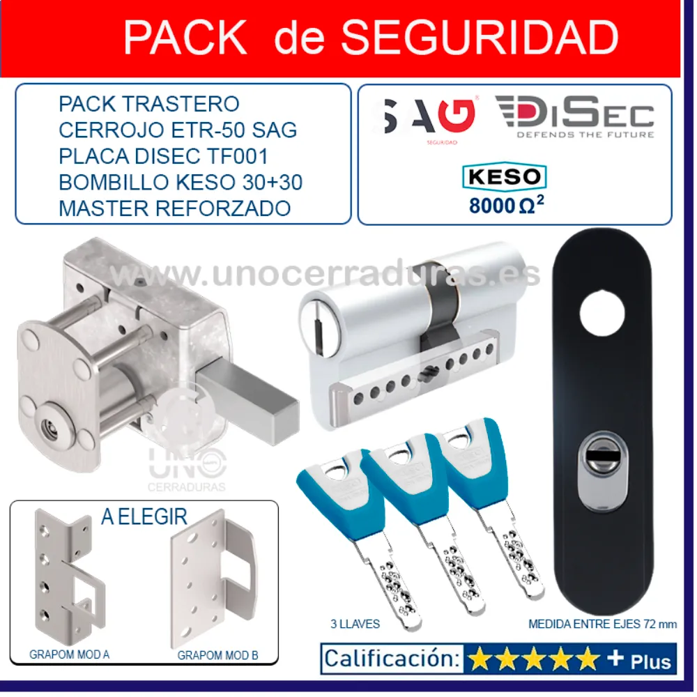 PACK TRASTERO ETR50 + 1 Keso 8000 MASTER REFORZADO 30+30 60mm + PLACA DISEC TF001 IGUALADO 3 LLAVES