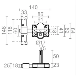 Cerrojo con barra de acero calibrado de 18mm. Placa de 80 mm de ancho y cerradero de 3 mm. Indicado para diferentes usos.